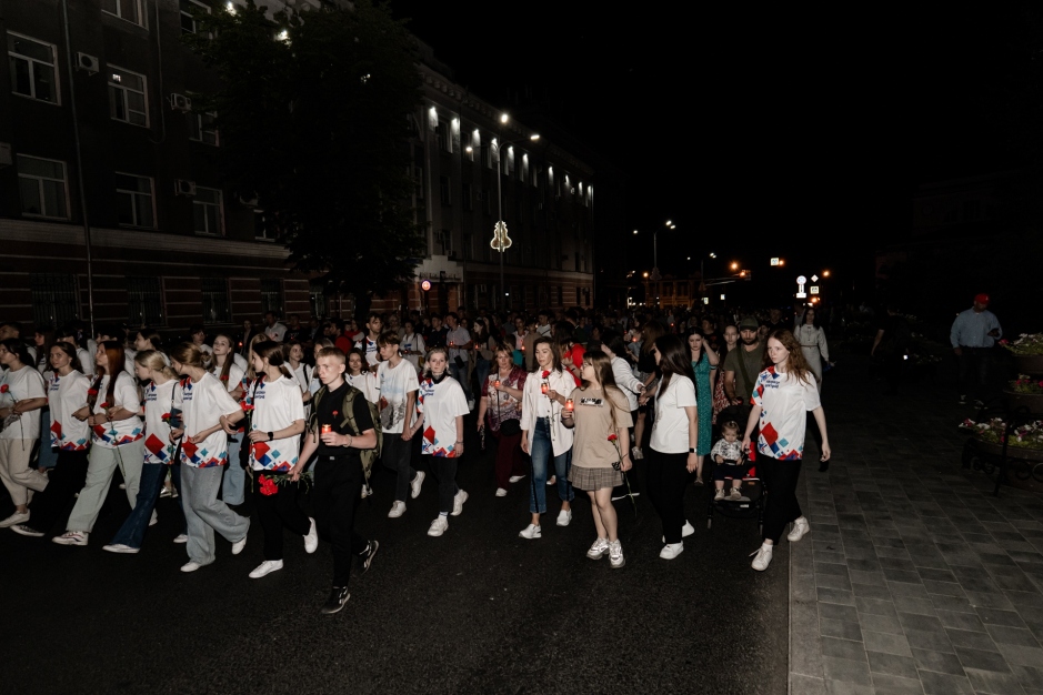Шествие началось ровно в 22.00 под бой часов кафедрального собора. Колонна липчан со свечами и красными гвоздиками в руках прошла вслед за волонтёрами, несущими баннер «Мы помним», по улице Зегеля до площади Героев. Здесь их встретили слова о нападении фашистских войск на СССР, прозвучавшие 22 июня 1941 года.