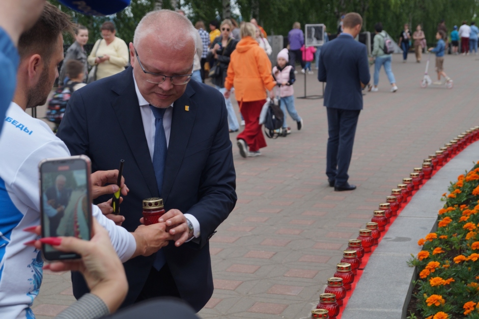 Каждый желающий, прогуливающийся по набережной, мог подойти и зажечь свечу у того дня, когда погиб или пропал без вести его близкий. Одну из свечей зажег врио Губернатора Кировской области Соколов Александр Валентинович.