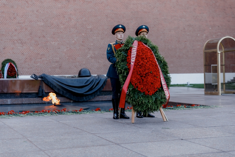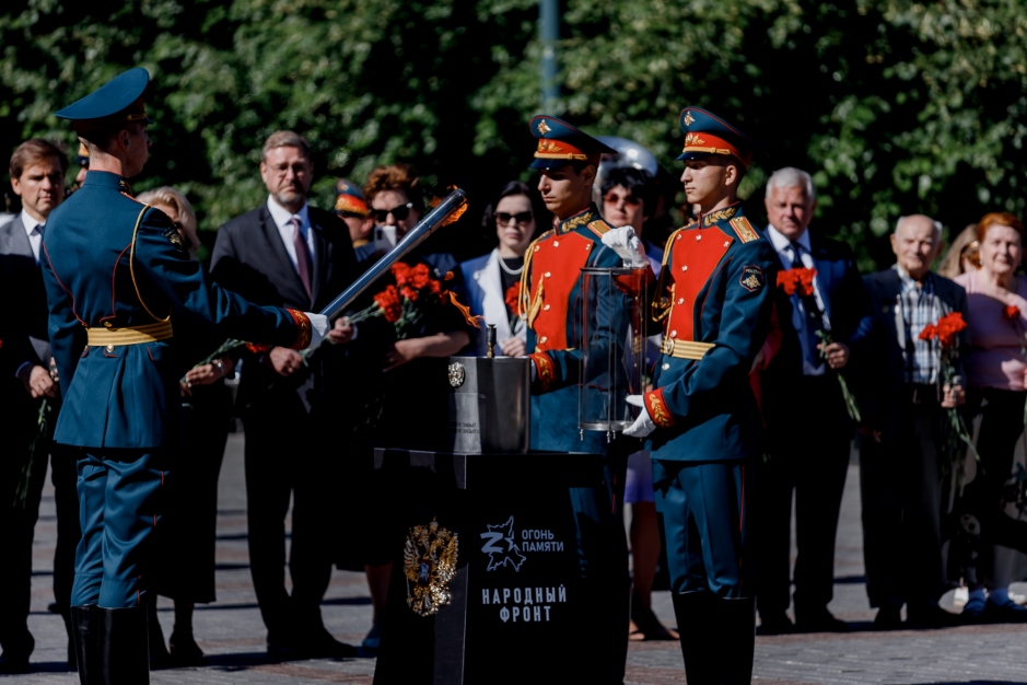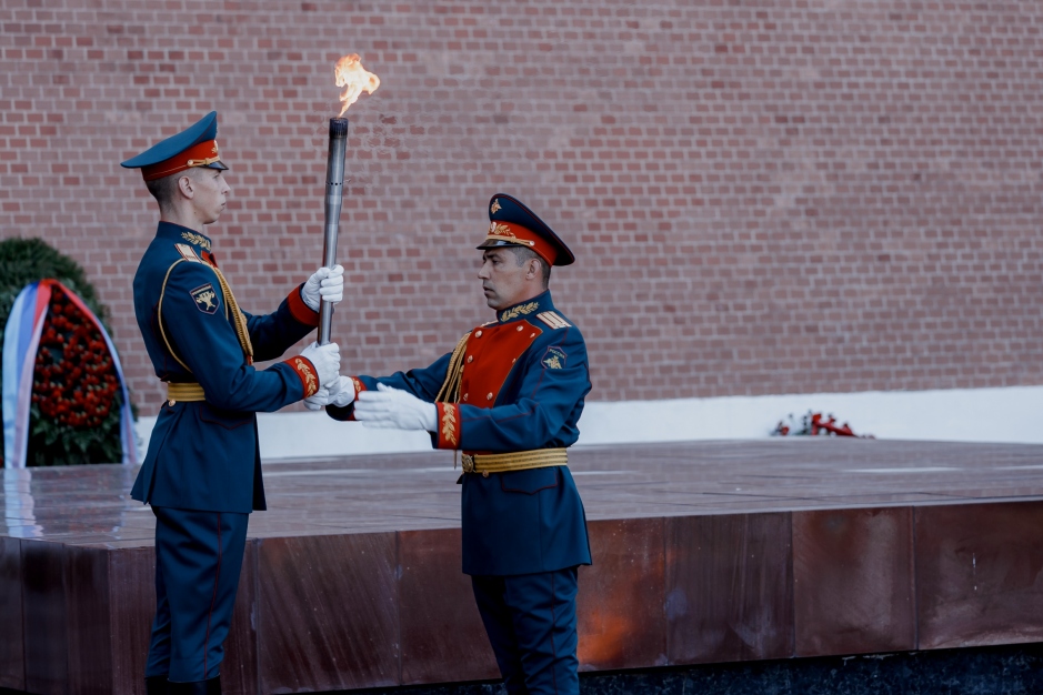 Церемония началась со смены почетного караула, представители 154-го Преображенского полка зажгли факел и передали огонь в газогорелочное устройство, которое с частицей Вечного огня доедет до Чувашской Республики. Участники мероприятия почтили павших в годы Великой Отечественной войны минутой молчания, возложили цветы и венки к Могиле Неизвестного Солдата.