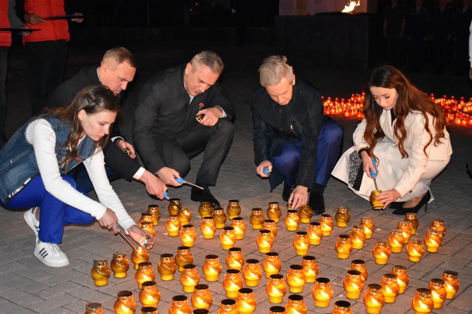 Участники акции также почтили минутой молчания память павших на фронтах Великой Отечественной войны и возложили цветы к Вечному огню.
