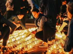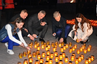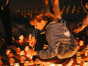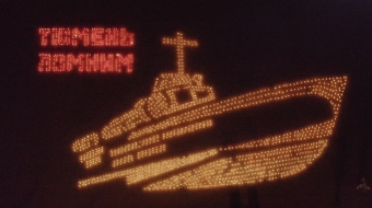 На Исторической площади города из свечей был выложен огненный контур торпедного катера «Комсомолец», который является символом трудовой Тюмени, символом единения поколений и памяти о тех, кто ковал Победу на фронте и в тылу.