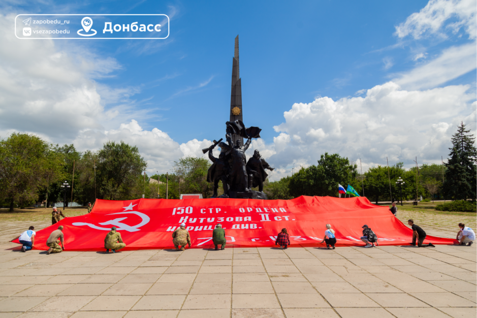 За несколько прошедших дней добровольцы сделали большое количество значимых дел: возложили цветы к памятнику павшим бойцам в линии обороны ЛНР в годы Великой Отечественной войны и развернули копию флага Знамени Победы с участием бойцов Донбасса, Волонтёров Победы ЛНР, ветеранов боевых действий Дагестана. Также волонтёры навестили с подарками участников Великой Отечественной войны и защитников, которые находятся на лечении в больницах. На границе с Мариуполем передали военнослужащим копию Знамени Победы и закрепили его на посту въезда.