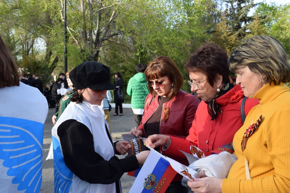 Волонтёры Победы города Камышин также присоединились к акции, и раздали всем желающим георгиевские ленточки — символ воинской славы, отваги, мужества, символ Победы.