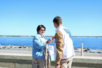 В преддверии празднования Дня Победы Волонтёры Победы Волгоградской области вышли на улицы города, чтобы раздать горожанам георгиевские ленточки.