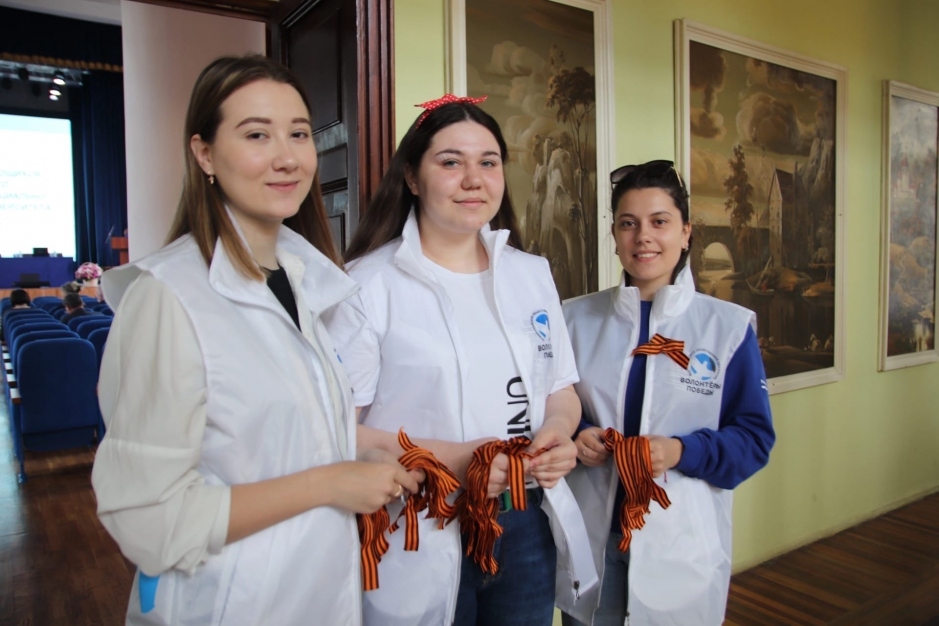 Волонтёры Победы ВолГАУ раздали символ Победы студентам и всем желающим. Ребята рассказали, что «Георгиевская ленточка» — это символ нашей победы над фашизмом, выражение нашего уважения к ветеранам, дань памяти павшим на поле боя, благодарность людям, отдавшим все на фронте.