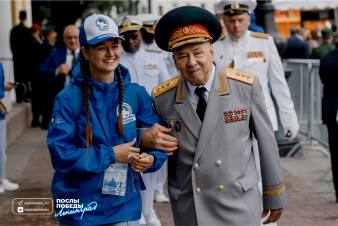 Добровольцы движения «Волонтёры Победы» сопровождали ветеранов, оказывали помощь на трибунах, координировали зрителей парада и гостей. Несмотря на погодные условия, волонтёры помогли организовать мероприятие на высшем уровне.