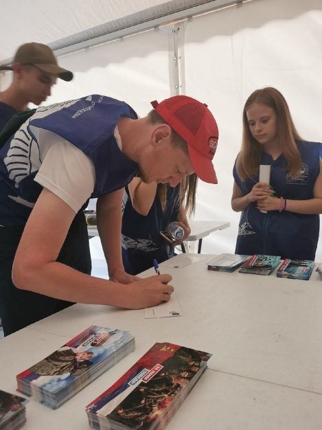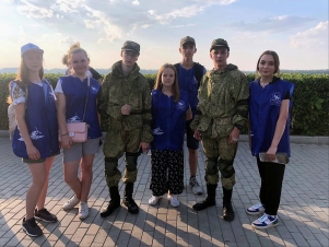 Активисты Движения посетили различные площадки. Перед началом концерта гостей праздника накормили солдатской кашей. На одной из площадок волонтеры приняли участие в акции по заполнению тематических открыток «Спасибо, парни!».