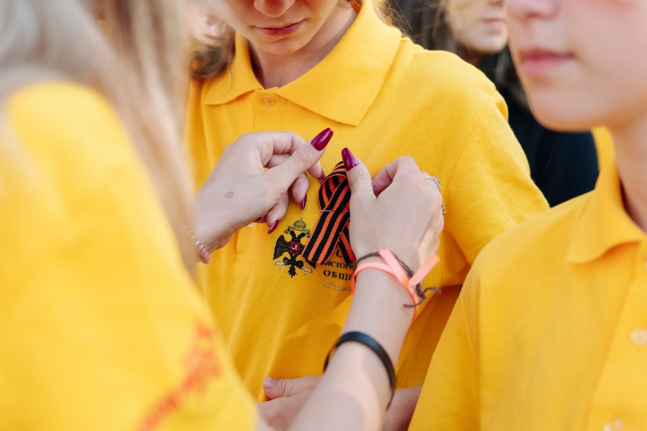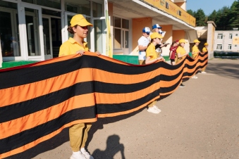 На протяжении нескольких дней участники смены разрабатывали мероприятия для всего лагеря. Одной из первых акций прошла «Георгиевская ленточка» – это символ выражения нашего уважения к ветеранам, день памяти павшим на поле боя, благодарность людям, отдавшим все для фронта. Волонтеры Победы прикрепили георгиевскую ленточку на груди, в районе сердца всем участникам смены.