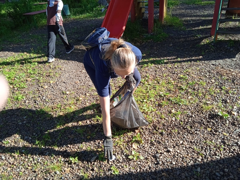 Мы собирали мусор на улице Ленина, детской площадке, в парке Победы. Конечно, обидно, что наши земляки не следят за чистотой в местах отдыха. Фантики, обертки, бутылки — вот что мы увидели утром на скамейках, дорожках, у качелей и в беседках.
