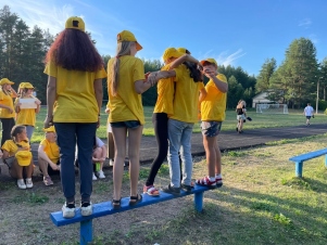 — Летчик. Команда делится на пары. В каждой паре участники становятся спиной друг к другу, руки отводят за спину. Руки связываются таким образом, что кисти остаются подвижными. После этого участникам выдается лист бумаги А4, и они за спиной должны собрать бумажный самолетик. Затем руки развязывают, команда запускает самолетики от линии старта таким образом, чтобы он перелетел линию финиша.