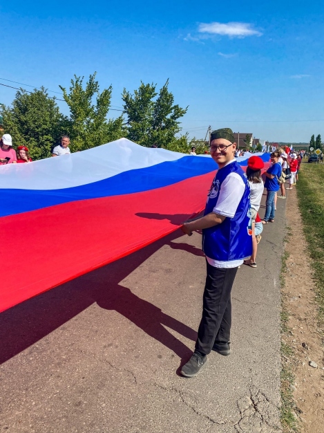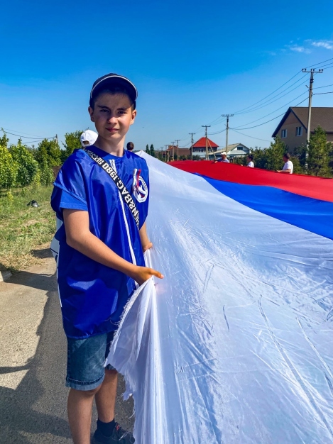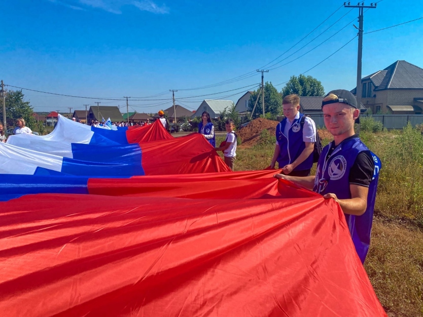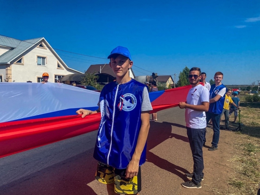 21 августа в Оренбургском районе Оренбургской области в селе Подгородняя Покровка на ул.Российская, 116 до перекрестка с ул. Полуденная Волонтеры Победы и жители Оренбуржья растянули триколор длиной 1300 метров.