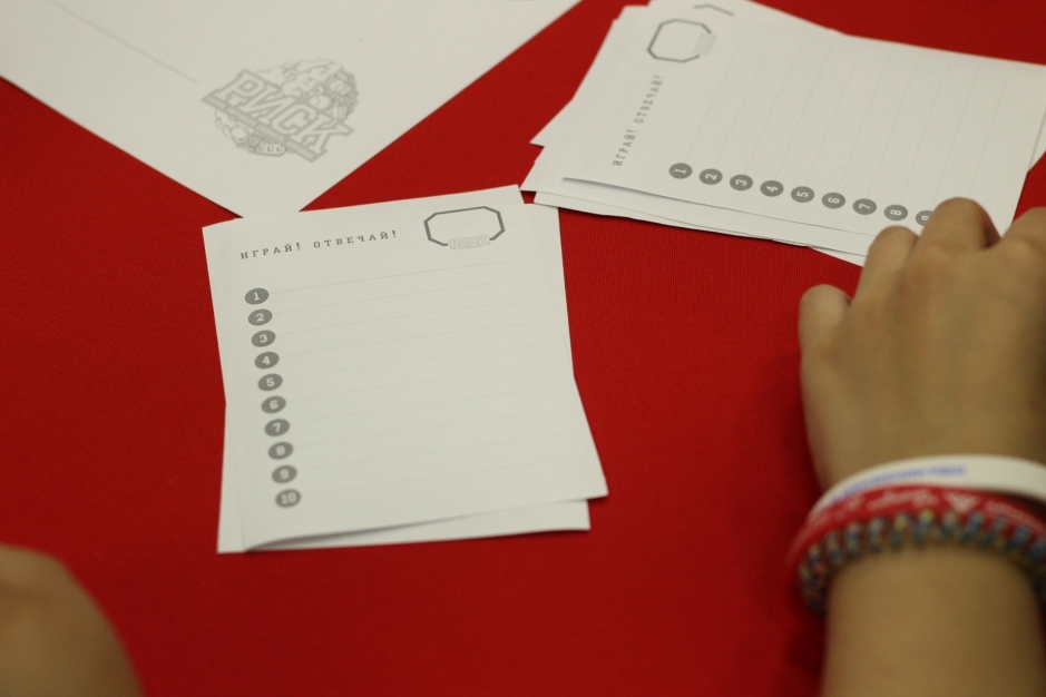 «Р.И.С.К.» — интеллектуальная игра, которая состоит из 3-х туров. Каждый из них состоит из 6 вопросов и относится к определенной тематике: рекорды России, природа России, интеллектуальные победы России. На ответ команде даётся ровно 1 минута, в течение этого времени необходимо обсудить и записать ответ на листочке. Важно не только написать правильный ответ, но и успеть сдать его. Для каждого вопроса третьего тура предусмотрено несколько подсказок, за использование которых баллы за ответ будут уменьшаться.