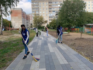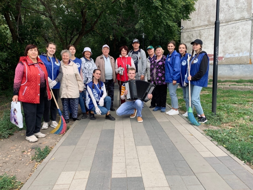Добровольцы убрали весь мусор, накопившийся за лето, и подмели тропинки. На протяжении всей эко-акции живая музыка баяниста придавала бодрость духа волонтёрам!