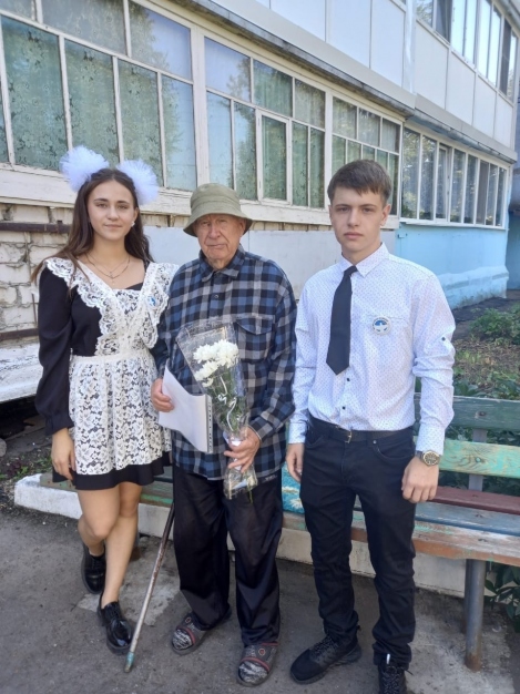 А сегодня ребята поблагодарили ветеранов за чистое небо над головой, за школьный звонок в новом учебном году, а также пожелали крепкого здоровья и долголетия, вручив письмо и подарок.