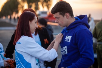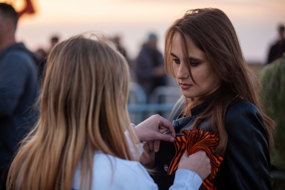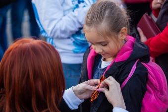 Кроме того, на открытии памятника добровольцы раздали всем участникам мероприятия Георгиевские ленточки. Для жителей Донбасса Георгиевская ленточка является символом объединения и правды. «Я с радостью принял Георгиевскую ленточку из рук Волонтёров Победы. Буду хранить и беречь её. Георгиевская ленточка - символ Победы в Великой Отечественной войне, памяти героических подвигов наших предков. 8 лет мы прятали ленту, а ветераны боялись надевать свои медали. Мы объединились, и у нас есть все силы, чтобы не допустить возрождение нацизма!» – поделился один из участников мероприятия по открытию Мемориала «Саур-Могила».