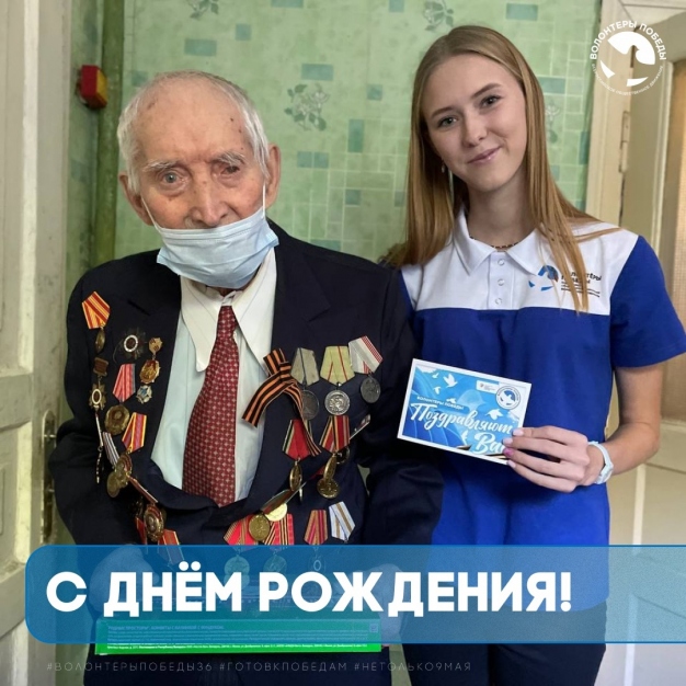 Волонтёры Победы Воронежа пришли в гости к ветерану и поздравили его с днём рождения.