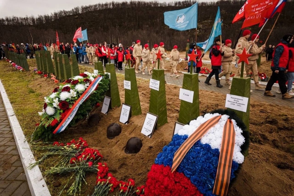 Волонтёры Победы Мурманской области приняли участие в траурном митинге и церемонии захоронения 134 советских воинов, павших в годы Великой Отечественной Войны в Заполярье.