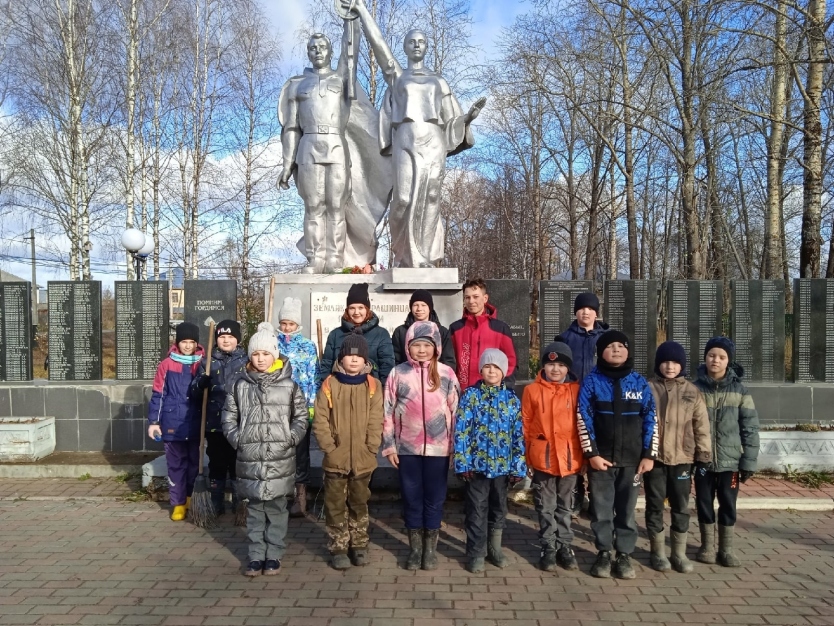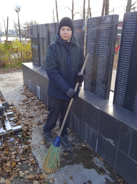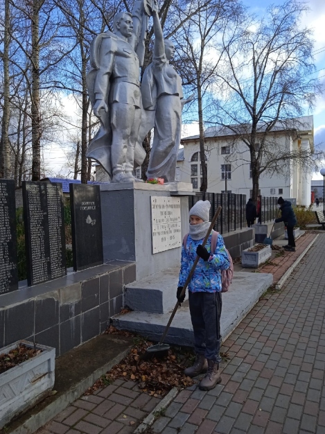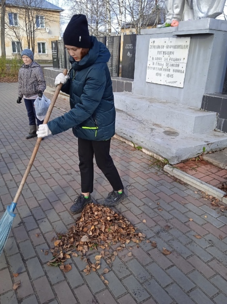 Во время субботника ребята собрали посторонний мусор в парке Победы, прибрали мемориальную зону.
