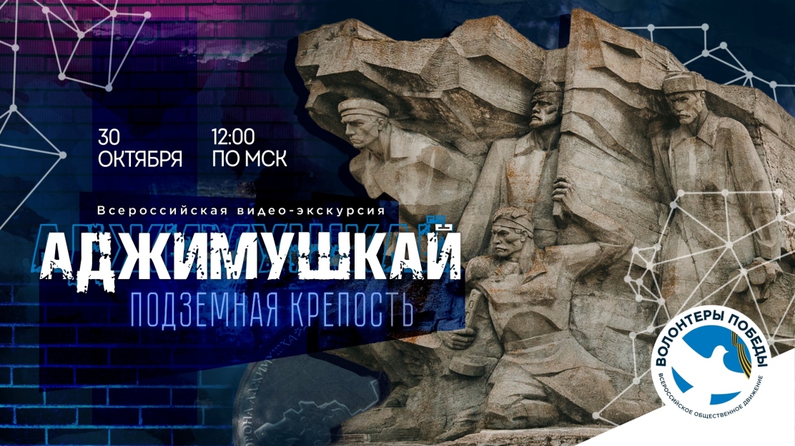 Всероссийская видеоэкскурсия «Аджимушкай – подземная крепость» – это новый формат от Движения, который позволил погрузиться в атмосферу Великой Отечественной войны и стать непосредственным участником исторических событий. Мероприятие прошло 30 октября в формате прямого эфира в сообществе «Волонтёров Победы» во ВКонтакте в 12:00 по московскому времени. Героизм и трагедии, ранее неизвестные факты из истории легендарного противостояния – все это зрители смогли увидеть в кадрах кинохроники, архивных документах, фото и видеоматериалах, представленных на видеоэкскурсии.
