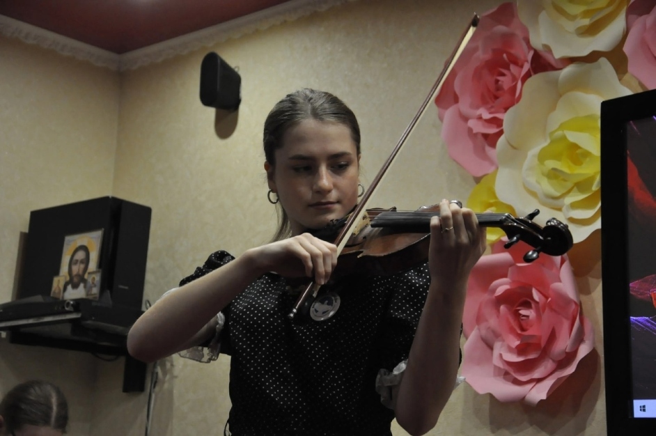 Для ветеранов была проведена музыкальная викторина из кинофильмов их молодости. София Строкина поразила всех своим ангельским голосом и завораживающей игрой на скрипке.