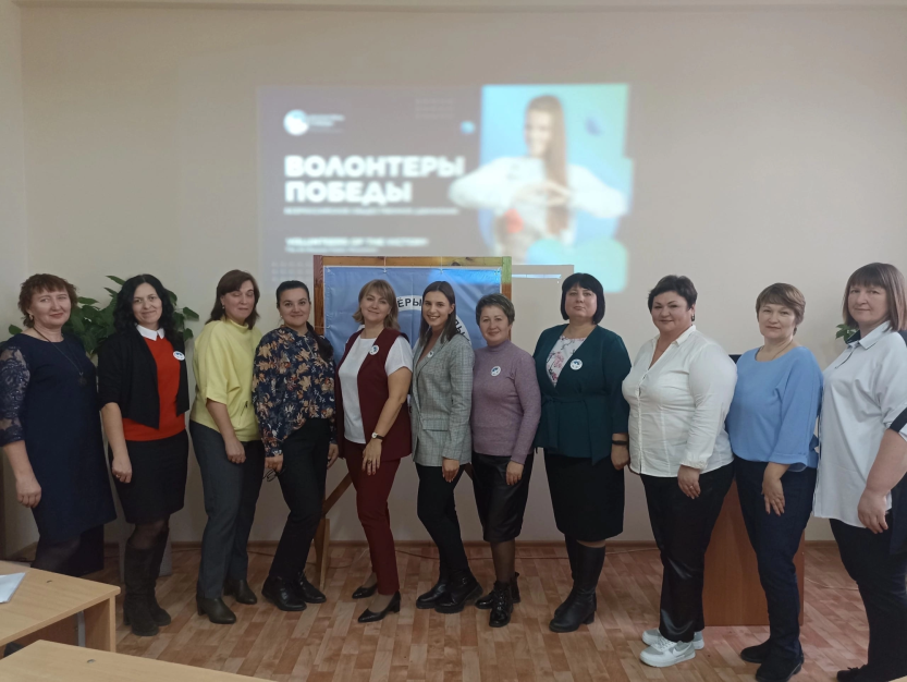 Руководитель отделения Алина Горлова провела для педагогов образовательную площадку. Она представила объемную презентацию о деятельности Волонтеров Победы, рассказала о направлениях, основных мероприятиях, специфике работы и структуре Движения.