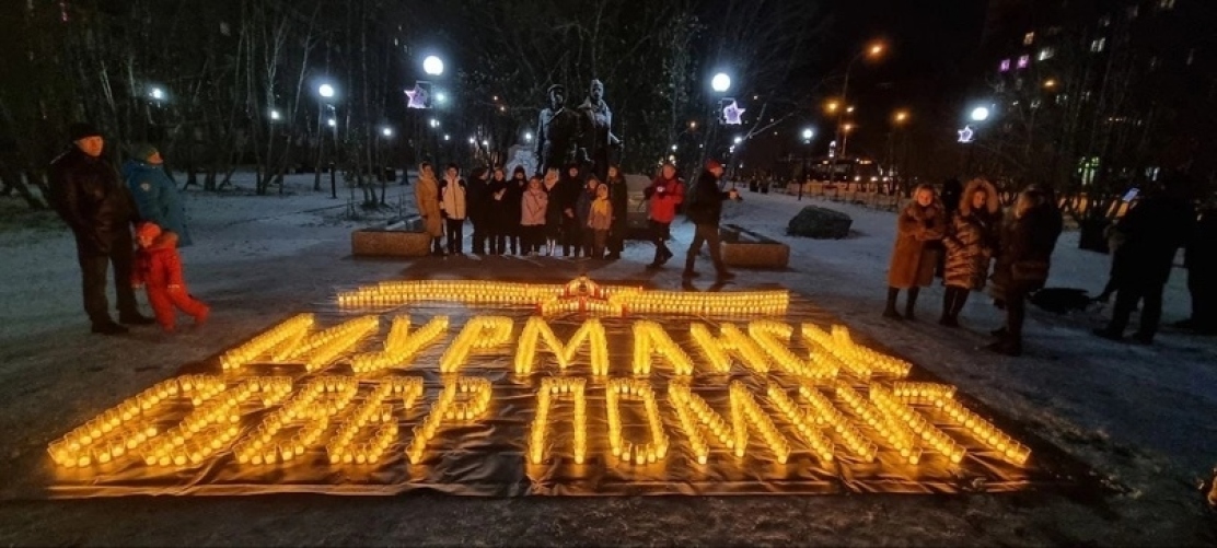 Несмотря на морозную погоду, «Волонтёры Победы» выложили композицию из свечей, в результате чего получилась красивая картина в память о подвиге наших предков. Горожане бесконечно благодарны за подвиг советских солдат, оборонявших Кольское Заполярье в годы Великой Отечественной войны. К этой акции присоединился Мончегорск.