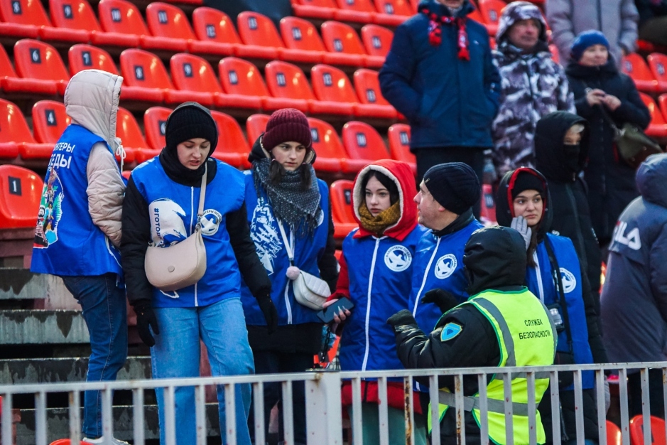 Добровольцы нашего движения приняли участие в организации игры: сканировали билеты на входе, рассаживали зрителей и выполняли роль помощников стюардов.