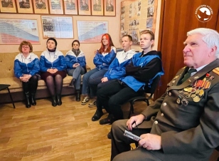 И вот добровольцы вновь встретились с Владимиром Момотом, председателем совета ветеранов Центрального района, чтобы поговорить о ракетных войсках и артиллерии, об их развитии и значении. После этого посмотрели фильм «День, когда не летают ракеты».
