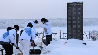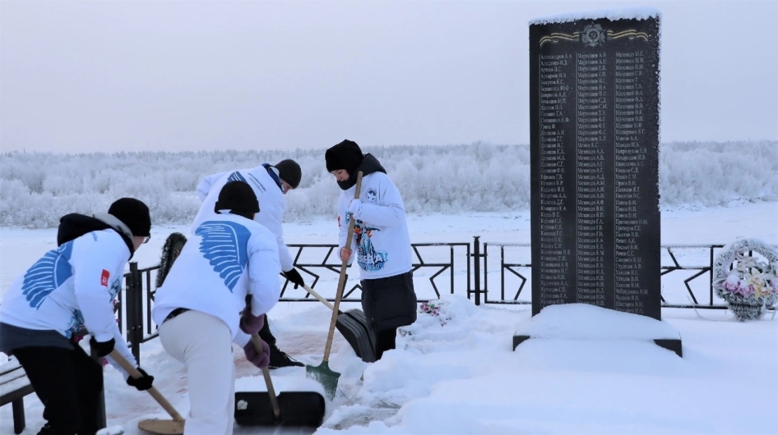 Волонтеры Победы муниципального штаба города Вуктыла провели патриотическую акцию «Международный субботник». В селе Подчерье ребята очистили от снега территорию мемориальной плиты в память о защитниках, погибших в Великой Отечественной войне.