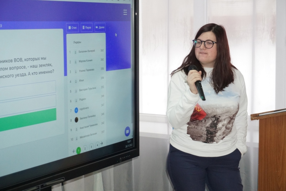 25 ноября прошел второй, практический этап. Перед участниками форума выступила заместитель руководителя Ивановского регионального отделения движения "Волонтеры Победы" Анна Кузнецова и рассказа о добровольчестве, проводимых мероприятиях в регионе и провела историческую игру.