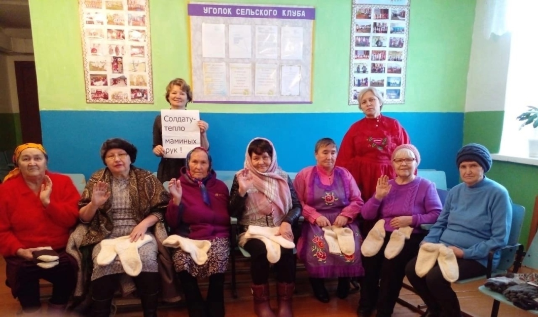 Связанные носки переданы в Волонтерский штаб им. М.Шаймуратова для дальнейшей передачи нашим землякам, которые стоят на страже родины. Также опекаемые из ПНИ с.Бакалы подготовили для мобилизованных ребят своими руками носки, варежки и мочалки.