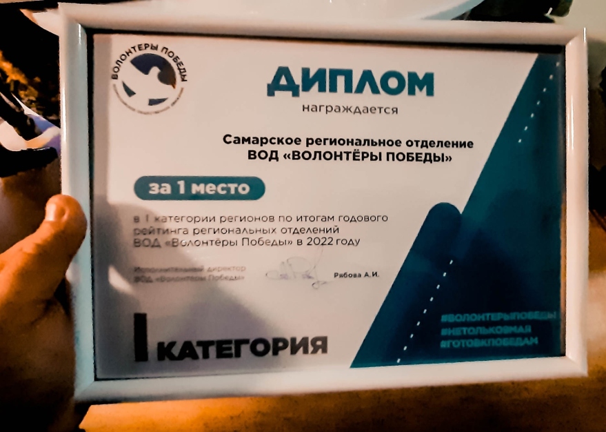 Самарское региональное отделение движения «Волонтеры Победы» стали первыми среди регионов с численностью населения более 2 млн. человек.