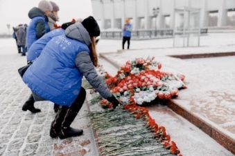Волонтёры Победы, прибывшие в Москву на Международный форум, провели на Поклонной горе церемонию, посвященную памятному дню и почтили память павших защитников Родины минутой молчания и возложением цветов.