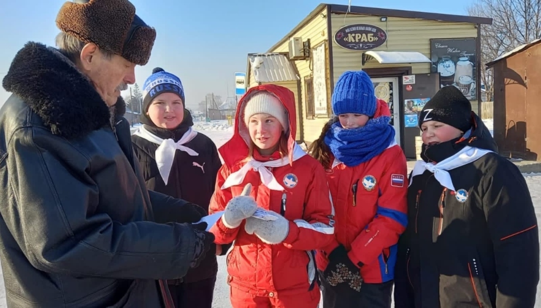 Волонтеры Победы рассказали о Героях Отечества в каждом уголке нашего края. Так, Волонтёры Победы Тальменского местного отделения раздали треуголки о героях-земляках в пяти населенных пунктах. В Кашкарагаихе жители узнали о сегодняшних героях, получивших Звезду Героя за участие в СВО. А активисты отряда Тальменской школы №3 навестили ветерана Великой Отечественной войны Фёдора Фёдоровича Потапова и поздравили его с праздником.