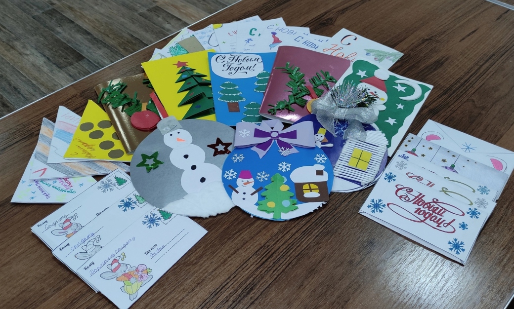 В рамках празднования Нового года и Рождества школьниками младших классов и воспитанниками клубных формирований были подготовлены поздравительные открытки для мобилизованных военнослужащих.