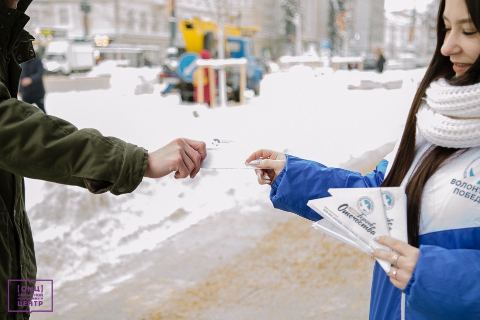 Волонтёры Победы Воронежской области ежегодно проводят акцию в честь Дня героев отечества: выходят на улицы и площади региона, чтобы вручить прохожим листовки в виде «писем-треугольников» с информацией о Героях.