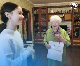 Школьный отряд Волонтёров Победы школы №557 в Невском районе поздравил с наступающим Новым годом участника Великой Отечественной войны Александру Петровну Лещук.
