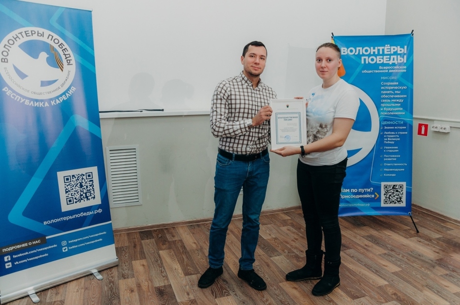 Волонтёры были поощрены благодарственными письмами и подарками. На собрании присутствовал директор Карельского регионального центра молодежи Н.В. Виноградов, который поблагодарил волонтеров за активную жизненную позицию и пожелал дальнейших успехов в добровольческой деятельности.