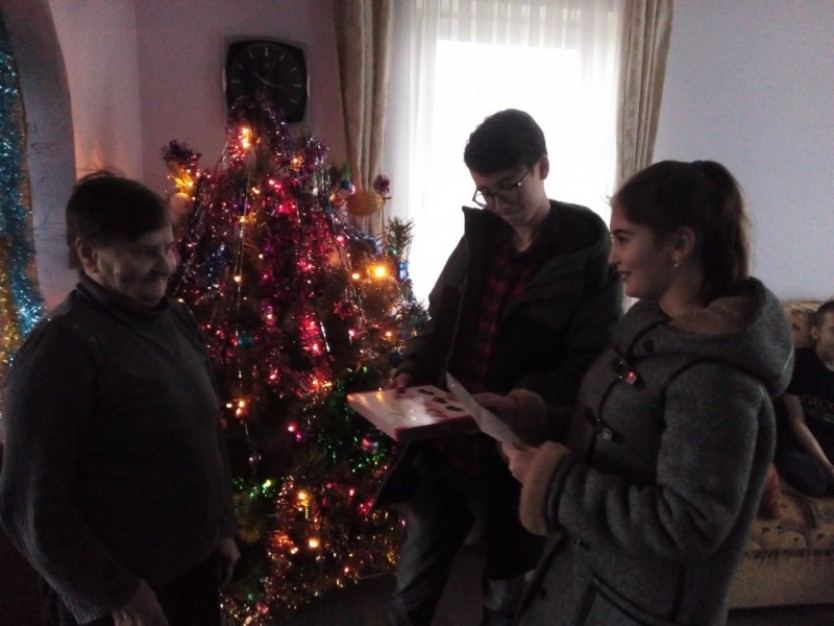 - волонтеры поучаствовали в акции «С Новым годом, ветеран!». Ребята поздравили Нину Александровну и Ивана Андреевича Коструб с наступающими новогодними праздниками;