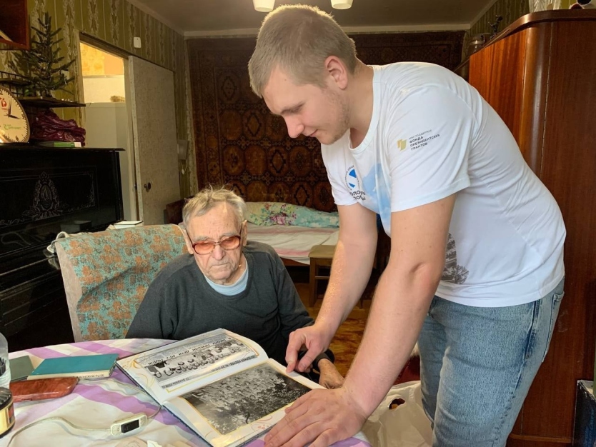 Волонтёры подарили подарки от партии «Единая Россия», посмотрели альбомы, вырезки из газет. Вячеслав Иосифович поделился воспоминаниями о своих военных годах.