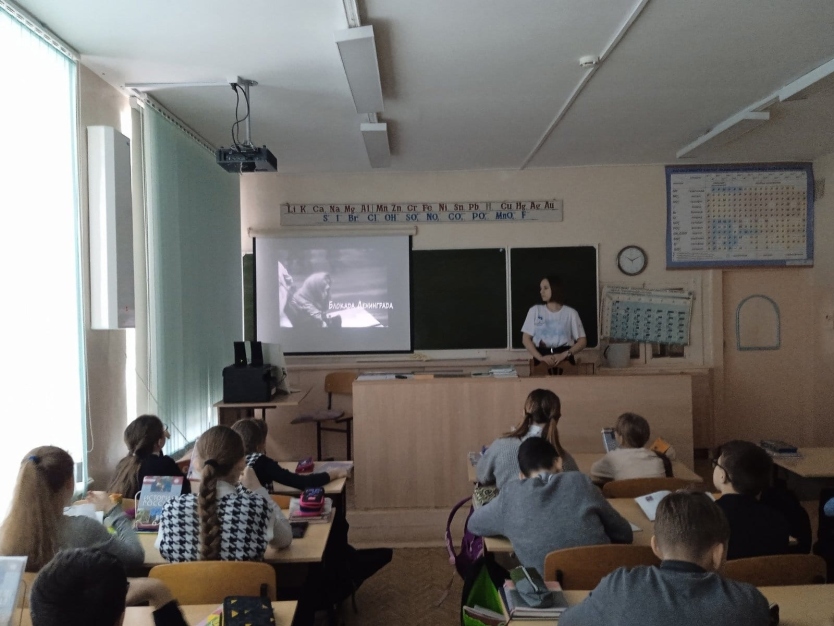 Во время уроков ребята познакомились с хроникой событий Ленинградской операции. Посмотрев тематический образовательный видеоролик, они узнали много нового о великой трагедии Великой Отечественной войны: о гражданском подвиге жителей и защитников блокадного Ленинграда, о значении обороны города в общей Победе в Великой Отечественной войне.