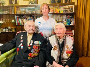 Еще живых освободителей Воронежа Волонтёры Победы также посетили, чтобы поздравить с памятной датой. Добровольцы вручили ветеранам подарки, узнали историю подвига Героев из первых уст, проявили внимание и заботу.