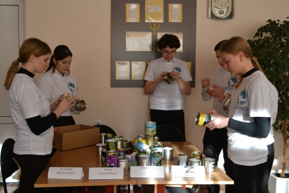 Волонтёрским отрядом школы была организована сортировка и очистка железных банок, которые приносили жители города. После чего банки были доставлены в пункт сбора.