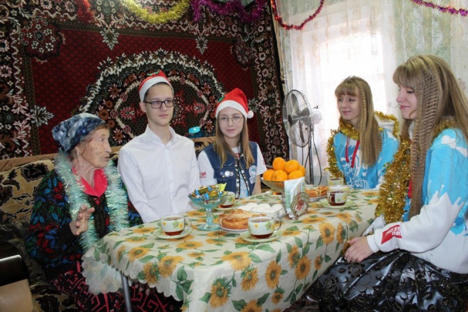 Ребята принесли с собой пихтовые ветки, сладкие подарки и новогоднее настроение. Несколько часов разговора за чашкой вкусного чая пролетели как миг. Было очень интересно послушать с первых уст о непростых моментах жизни маленькой Раисы в годы Великой Отечественной войны.