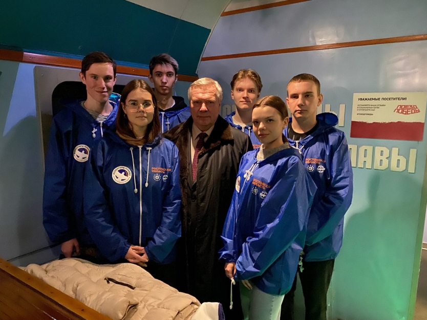 Сегодня станцию «Ростов Главный» посетил губернатор Ростовской области Василий Юрьевич Голубев. Вместе с участниками молодёжной организации «Движение Первых», и в сопровождении Волонтёров Победы, он совершил экскурсию по вагонам «Поезда Победы».