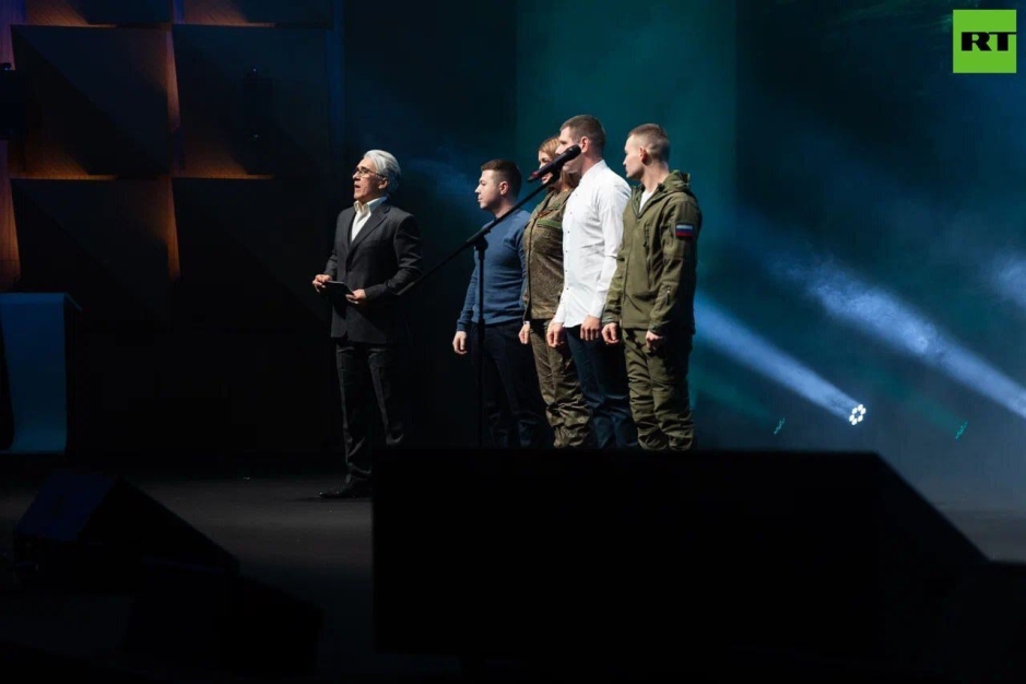 На церемонии открытия в зале находились самые важные гости — бойцы с фронта. Участников и зрителей поприветствовали главред RT Маргарита Симоньян, министр культуры РФ Ольга Любимова и официальный представитель МИД России Мария Захарова