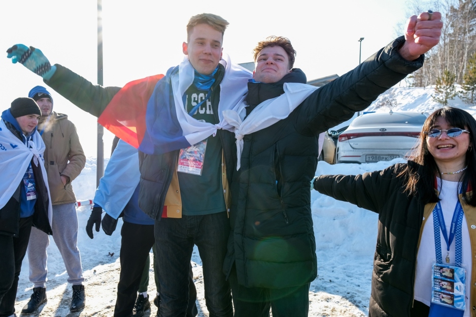 23 февраля Волонтеры Победы вместе с Юнармейцами г. Красноярска и более 100 студентов из 23 регионов нашей страны участников «Всероссийского зимнего фестиваля массового спорта Ассоциации студенческих спортивных клубов России» приняли участи в массовой акции ко Дню защитника Отечества «Герои нашего времени».