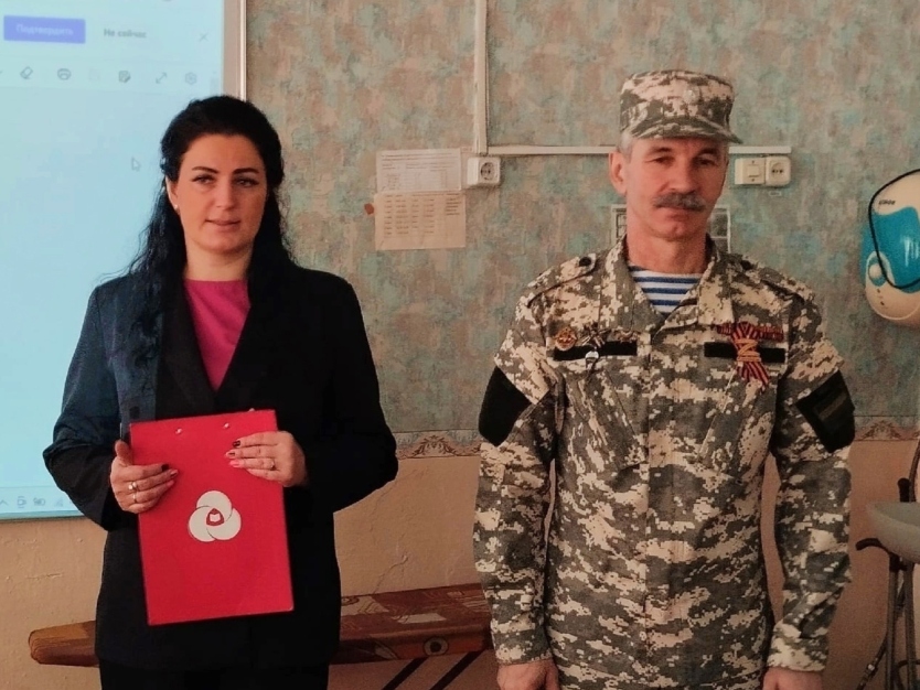 В рамках урока волонтеры пригласили ветерана боевых действий - Юрия Николаевича Юданова. Он поговорил со школьниками о проявлении патриотизма в современном обществе, поделился своими мыслями о том, какими качествами должен обладать настоящий герой и рассказал историю своего геройского пути.