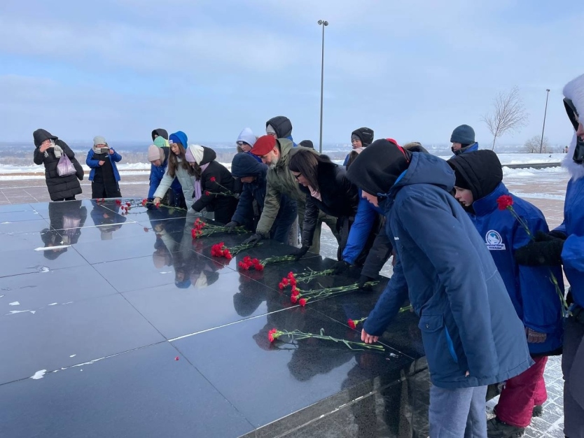 В торжественной церемонии возложения цветов к мемориалу приняли участие ветеран Великой Отечественной войны, почетный ветеран города Нижнего Новгорода, заслуженный ветеран Нижегородской области Евгений Иванович Макаров, председатель межрегиональной общественной организации «Ветераны боевых действий» Михаил Тараканов, активисты и амбассадоры Российского движения детей и молодёжи «Движение первых» в Нижегородской области, а также волонтеры Победы. Память павших героев почтили минутой молчания.