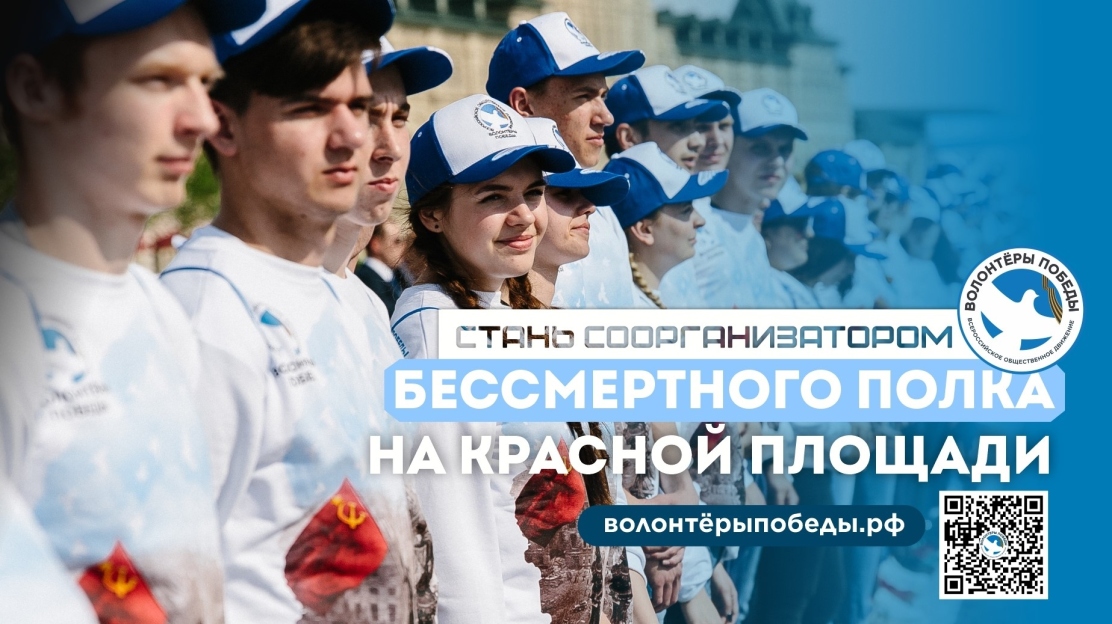 Став добровольцем, ты поможешь в проведении самого масштабного шествия страны на Красной площади. Ты получишь незабываемые эмоции и уникальный опыт организации крупнейших мероприятий. А также лично сможешь увидеть, как тысячи людей выйдут на улицы, чтобы пронести портреты своих близких, сражавшихся за Великую Победу!